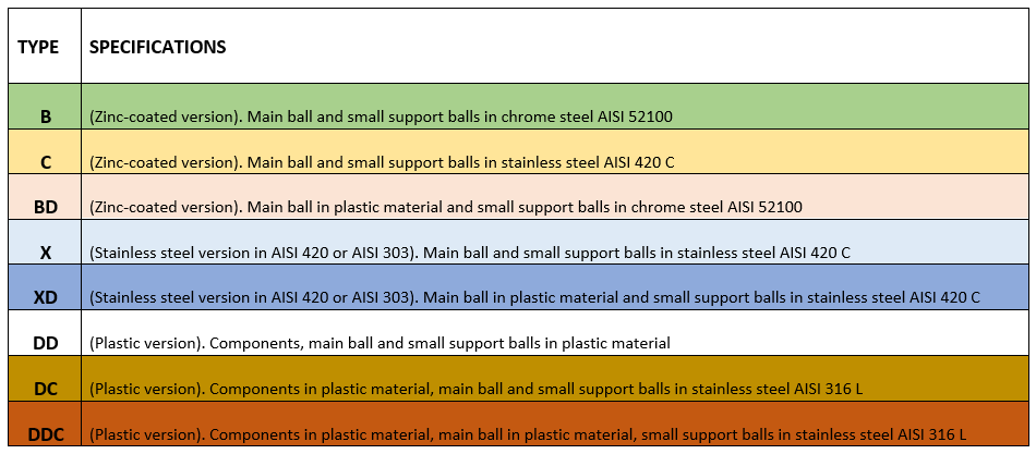 This section includes different versions of ball transfer units in turned steel machined from bar or in turned plastic material, defined as “special” since they comply with particular needs of use and fixing. It also includes accessories such as fixing and tolerance rings.